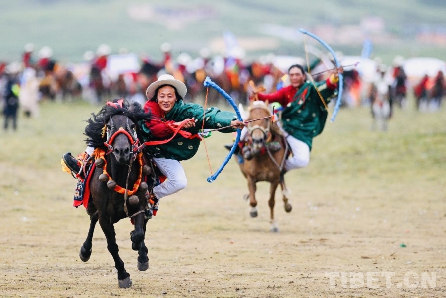 接下來,曲登鄉(xiāng)、禾尼鄉(xiāng)、村戈鄉(xiāng)騎手接連登場,兩輪競演,騎手們駕馭駿馬如履平地。俯身拾哈達(dá)的瞬間,身體幾乎與地面平行?!斑燃m”技藝展示時,騎手在馬背上輾轉(zhuǎn)騰挪,打靶環(huán)節(jié)箭矢破空,正中靶心?!斑@些騎手和馬就像是一體的,太厲害了!”現(xiàn)場游客張女士忍不住驚呼。現(xiàn)場的觀眾也被騎手們精湛的騎術(shù)和人馬合一的表演所折服,掌聲如雷貫耳。