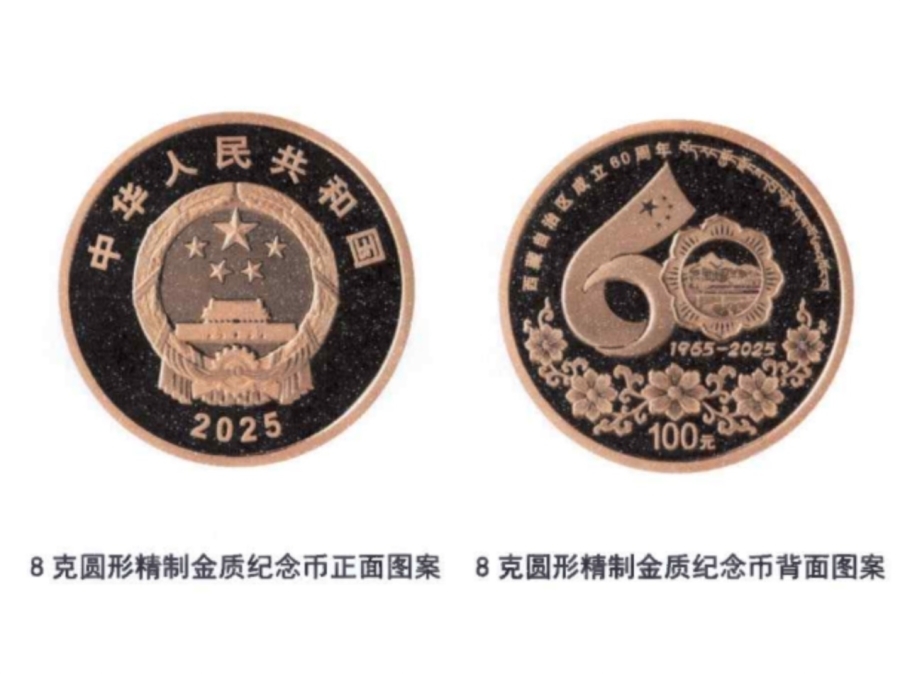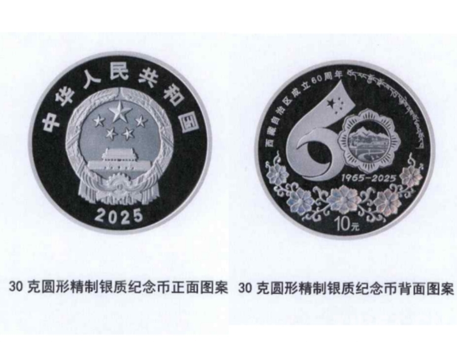 紀(jì)念幣正面圖案為中華人民共和國國徽,背面采用西藏自治區(qū)成立60周年慶祝活動(dòng)徽標(biāo)為主圖案,配以格?;y飾,并刊有“西藏自治區(qū)成立60周年”國家通用語言文字、藏語言文字字樣及面額。中國金幣集團(tuán)總經(jīng)理井軍介紹,該套紀(jì)念幣采用了浮雕、鏡面、激光噴砂等先進(jìn)造幣工藝,充分展現(xiàn)了西藏的發(fā)展成就和獨(dú)特文化。