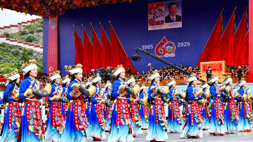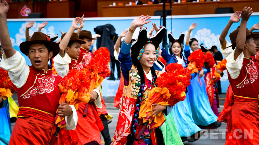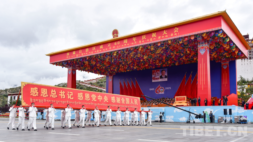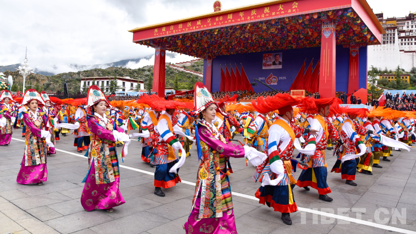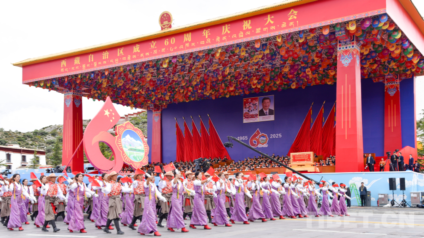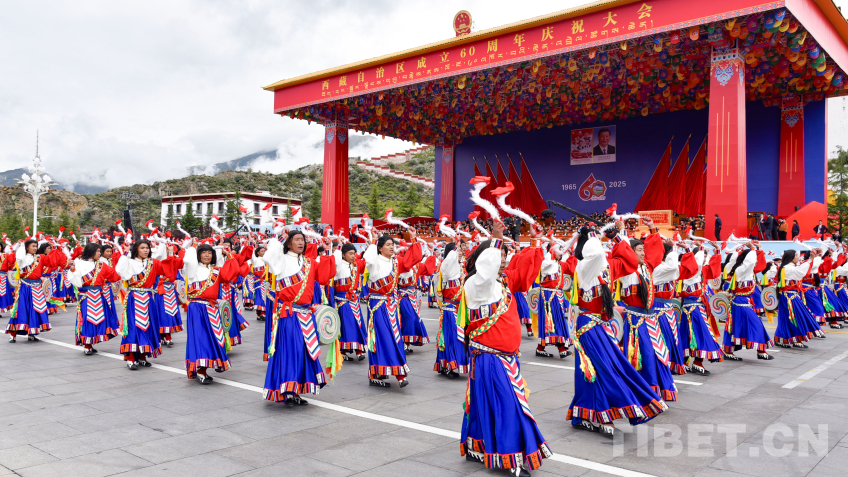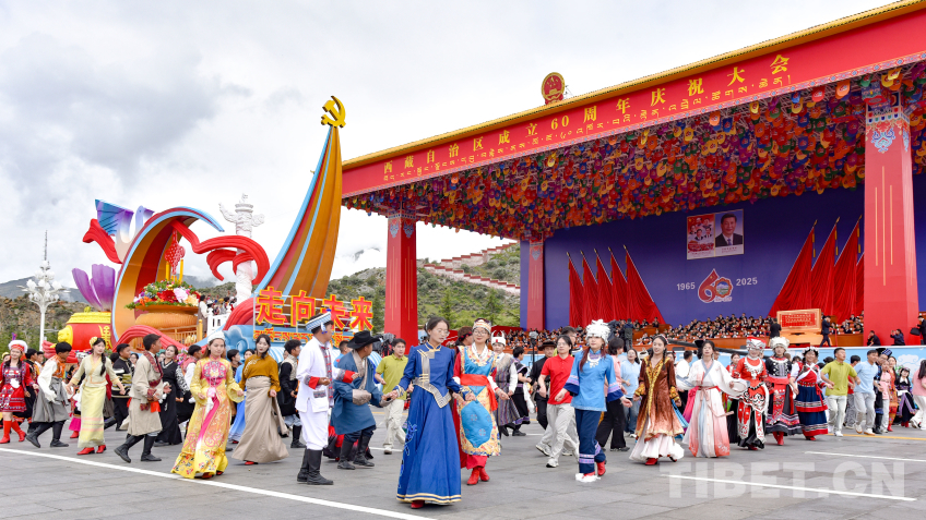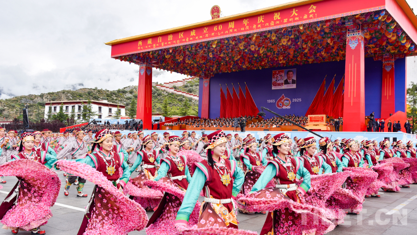 中國(guó)西藏網(wǎng)訊 8月21日上午,西藏自治區(qū)成立60周年慶祝大會(huì)在拉薩隆重舉行。慶祝大會(huì)舉行充滿吉祥喜慶氣氛的盛大群眾游行。游行分為“旗幟引領(lǐng)”“四件大事”“奮進(jìn)新時(shí)代”“走向未來(lái)”4個(gè)單元,26個(gè)群眾游行方隊(duì)、彩車(chē),在歡快的音樂(lè)中依次行進(jìn)。各族群眾身著絢麗多彩的服飾,跳起熱情歡快的舞蹈,表達(dá)過(guò)上幸福生活的喜悅之情、對(duì)黨和國(guó)家的感恩之情。(中國(guó)西藏網(wǎng) 記者/王淑 趙振宇 德吉卓瑪 次旦拉姆 旦曲 賈華加 趙釗 姚浩然 劉莉 邊子捷 馮重霖 楊眉笑)