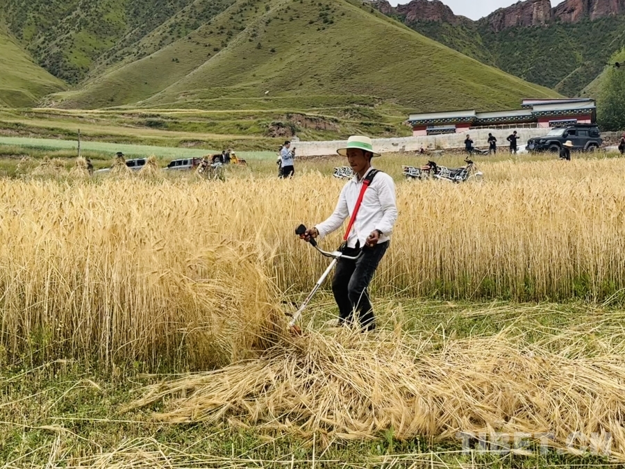 圖為村民們正在收割成熟的黑青稞 攝影:畢然