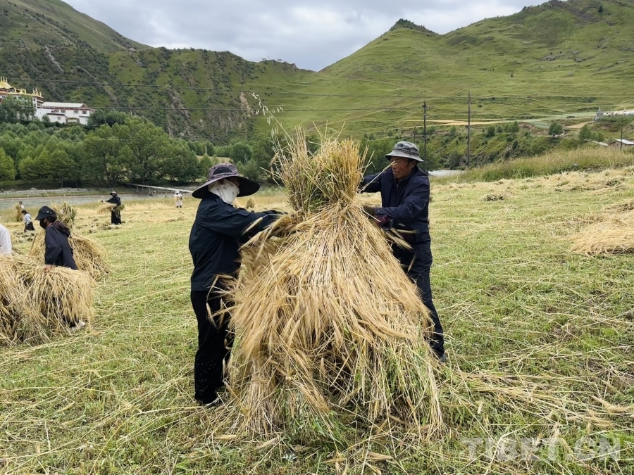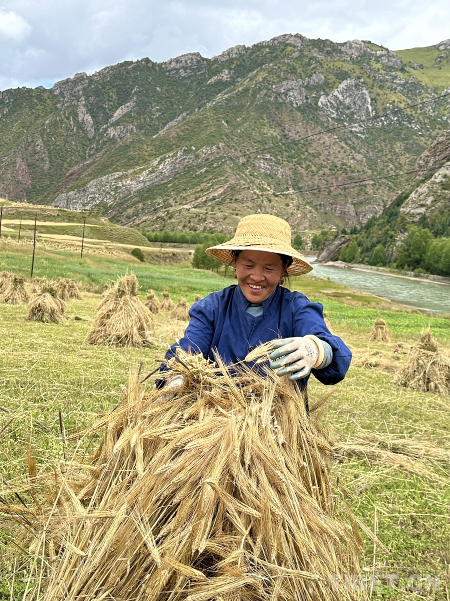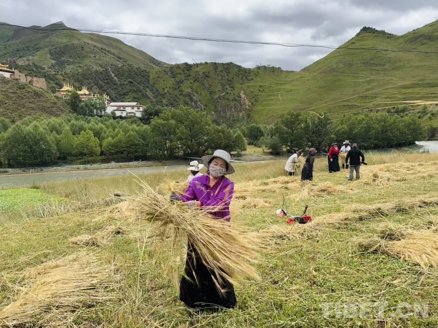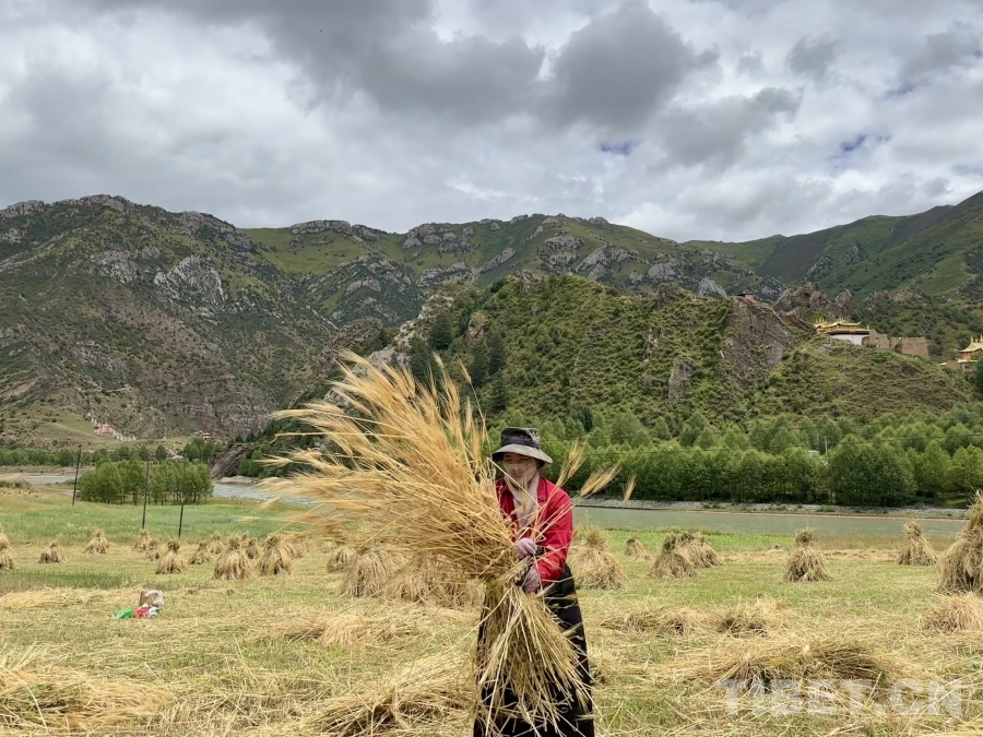 金穗低頭,豐收在望。孜榮村人們用勤勞的雙手繼續(xù)書寫著“高原糧倉(cāng)”的豐收故事。(中國(guó)西藏網(wǎng) 記者/畢然 龍真多吉)