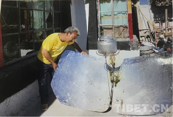 這個是太陽灶,大概是2000年左右,基本上每家每戶都有一臺。我們屬于半農(nóng)半牧,生火用木材,消耗很大。有了這個太陽灶后,不用木料,而且也很方便。但由于存在火災(zāi)隱患,后來就沒用。我們現(xiàn)在住的這套房子是2018年新建的,照片中的是2018年前的房子。