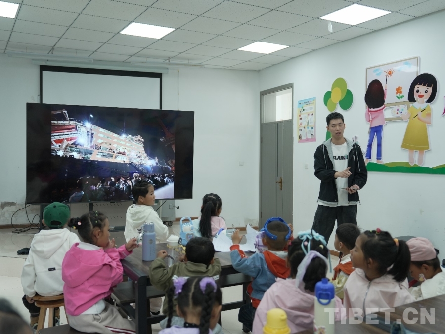 這是上海海事大學(xué)西部夢想實踐團在西藏日喀則市亞東縣開展“七彩假期”公益課堂活動的一個畫面。2025年暑期,上海海事大學(xué)13名師生帶著航海模型、繩結(jié)教具和滿腔熱忱,用15天的“七彩假期”公益課堂,在高原孩子心里種下海洋與航海的夢想。