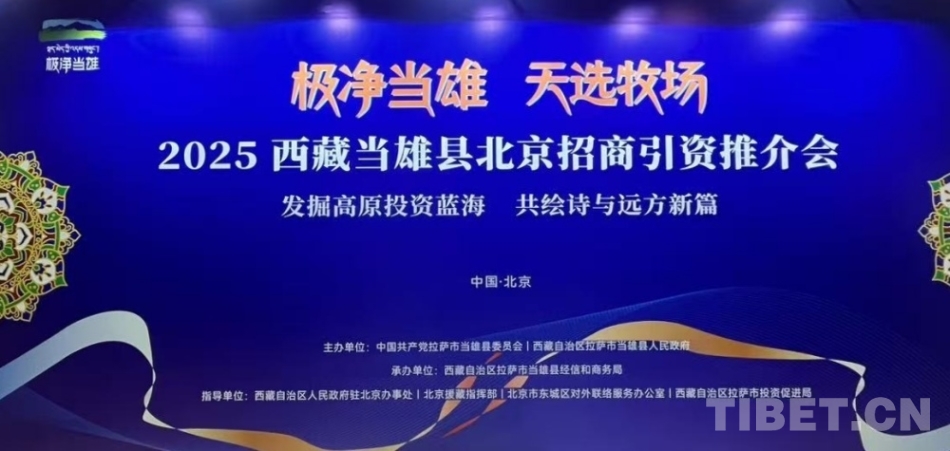 中國(guó)西藏網(wǎng)訊 9月8日,2025西藏當(dāng)雄縣北京招商引資推介會(huì)在北京西藏大廈舉辦。推介會(huì)以“極凈當(dāng)雄·天選牧場(chǎng)——發(fā)掘高原投資藍(lán)海,共繪詩(shī)與遠(yuǎn)方新篇”為主題,由中共當(dāng)雄縣委員會(huì)、當(dāng)雄縣人民政府主辦,北京援藏指揮部、東城區(qū)相關(guān)部門聯(lián)合指導(dǎo),吸引了來自北京及周邊等地的80余家企業(yè)代表參會(huì)。