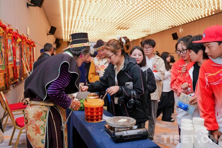 活動(dòng)現(xiàn)場還設(shè)置了茶歇區(qū)、展覽閱讀區(qū)和非遺體驗(yàn)區(qū)。嘉賓們品嘗工布阿拉酒與藏式茶點(diǎn),欣賞青年藝術(shù)家畫作和林芝主題圖書,并親身體驗(yàn)藏香制作、藏文書法、藏紙拓印等非遺項(xiàng)目,多維度感受林芝文化的生機(jī)與魅力。