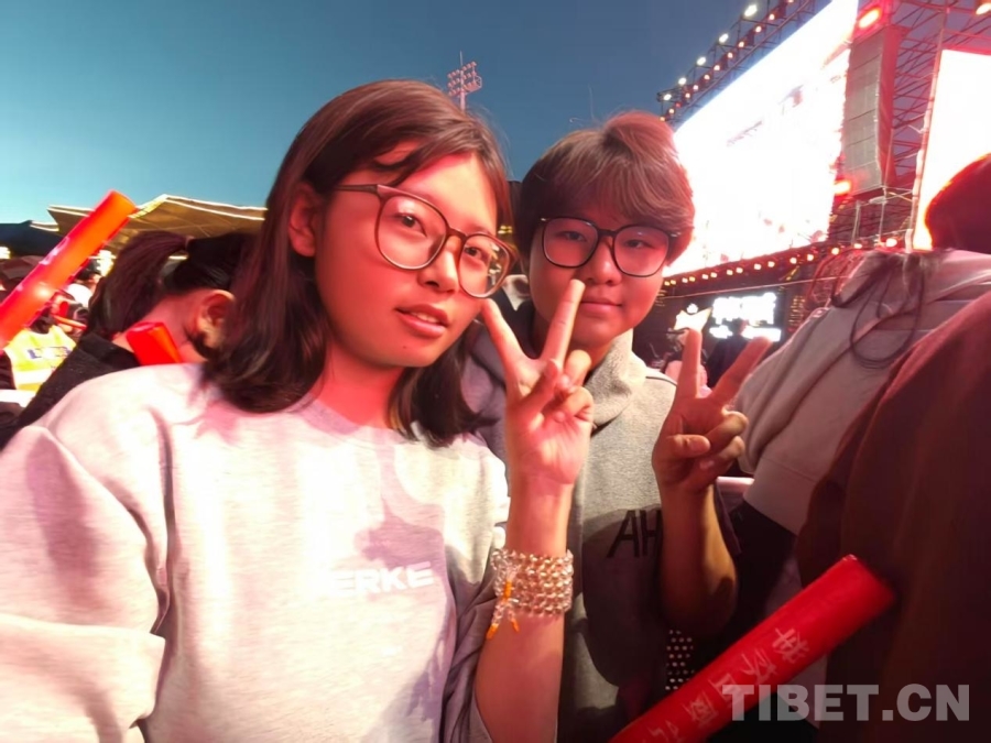 在她身旁的是兩位來自西藏大學(xué)的學(xué)生——米瑪倉覺和她的朋友旦增措姆。她們在接受采訪時表示,如今拉薩這類文化活動越來越多,只要有空她們就會參加?!斑@樣的場合不僅能見到喜歡的歌手,也讓我們在校園生活之外學(xué)到新東西,我們非常喜歡?!泵赚攤}覺說道。