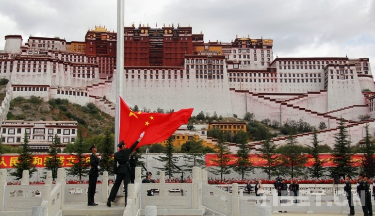 圖為布達拉宮廣場上,拉薩各族各界代表參加升旗儀式 攝影:趙釗
