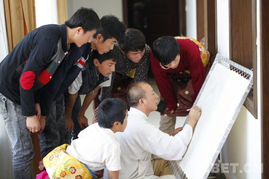 在我們的印象中,如果是一個唐卡大師,主要工作或許就是培養(yǎng)更多唐卡傳承人。然而,娘本卻并非如此。他的工作除了培養(yǎng)更多唐卡傳承人之外,還為其他事業(yè)做出了很多貢獻(xiàn)。他說,自己每年都會為同仁的100多戶脫貧戶發(fā)放面粉、大米、油以及現(xiàn)金等物資。在救助的過程中,他發(fā)現(xiàn)教育是一個地方、一個家庭發(fā)展的重要因素。他說,有一次他在村子里走的時候,碰見了村子里一個比他歲數(shù)大的人。通過交談,他得知對方家的孩子今年考上了大學(xué),但家長歲數(shù)大,收入有限,兩個孩子無法同時上學(xué)。娘本聽了以后,毫不猶豫地說:“只要你讓孩子享受教育,我來資助學(xué)生?!彼€感慨地說:“我們那個年代沒有機(jī)會享受現(xiàn)在的優(yōu)質(zhì)教育,現(xiàn)在國家政策好,讓孩子享受我們國家優(yōu)質(zhì)教育成為人才是最重要的?!蹦悄觊_始,他就走上了資助學(xué)生的道路。因?yàn)樵谒磥?,一個學(xué)生培養(yǎng)出來,能影響一個家庭或者一個村莊甚至一代人。
