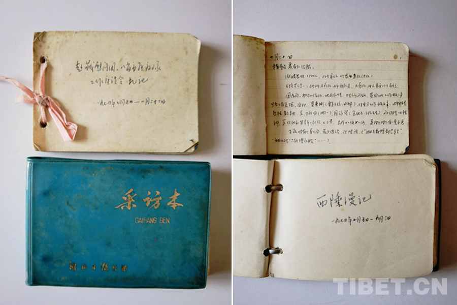 梳理完這些親手拍的片子,丁先生突然想起,他當(dāng)年赴藏寫有日記,還保存著,我大為驚訝,本能地意識(shí)到這是極珍貴的檔案資料。先生又翻書柜,找出個(gè)小本子,上面依時(shí)間順序,密密麻麻地記載著湖北團(tuán)隊(duì)幾乎每天的活動(dòng)。真是難得一見的寶貝呀!經(jīng)先生同意,筆者對(duì)日記逐頁(yè)拍照,帶回家研究。