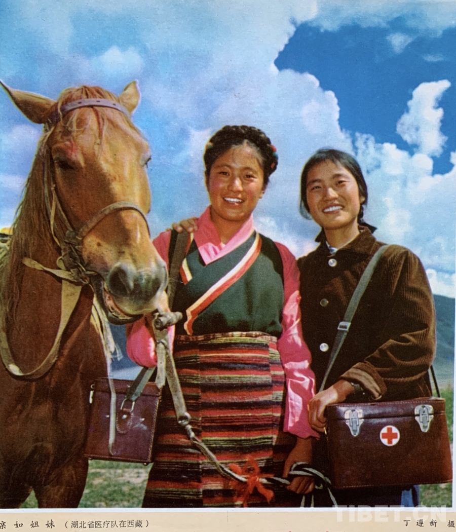 1974年,國(guó)家關(guān)心西藏醫(yī)療事業(yè)和西藏群眾身體健康,組建了“全國(guó)八省市醫(yī)療隊(duì)赴藏慰問(wèn)團(tuán)”,飛赴雪域高原送去黨的溫暖。著名攝影理論家、中國(guó)攝影金像獎(jiǎng)獲得者、陳復(fù)禮攝影美學(xué)思想研究權(quán)威丁遵新先生,與筆者母親鄧曉安,早年都是湖北省衛(wèi)生廳干部,都是慰問(wèn)團(tuán)的成員。
