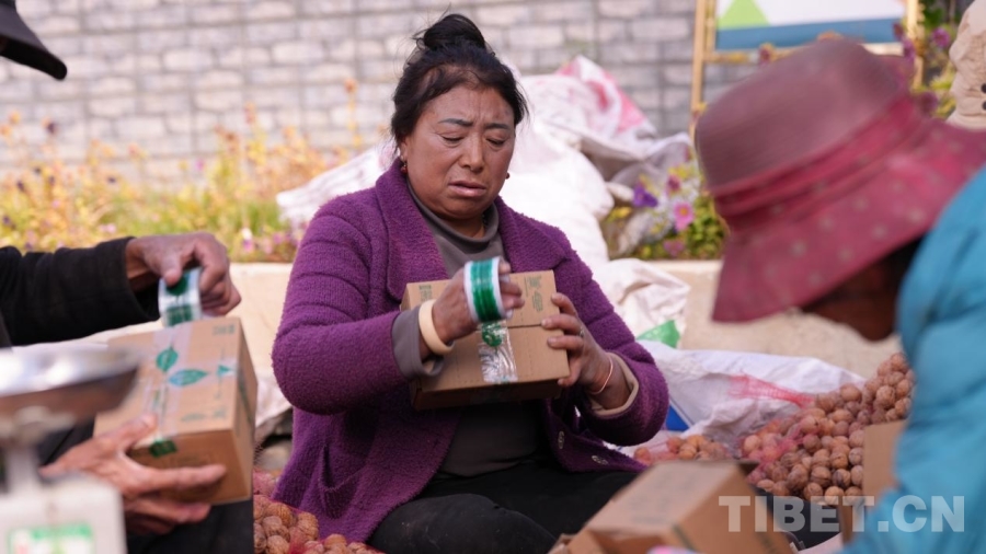 中國(guó)西藏網(wǎng)訊 10月21日,在西藏山南市加查縣安繞鎮(zhèn)拉崗村的千年核桃林內(nèi),村民們正忙碌地將今秋采收的核桃打包,準(zhǔn)備通過電商平臺(tái)發(fā)往全國(guó)各地的顧客手中。