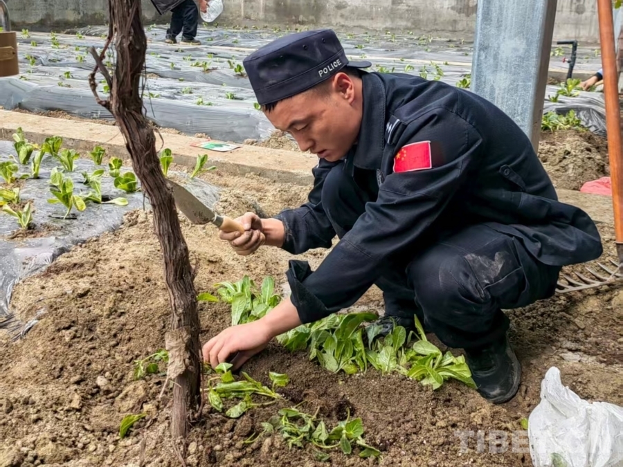 圖為民警參加日常生產(chǎn)勞動(dòng)