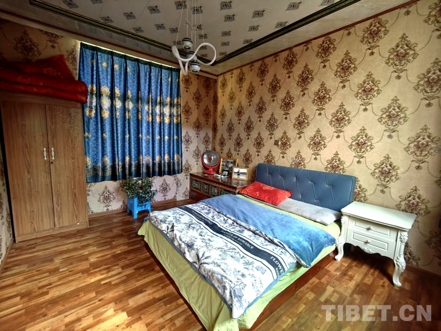 這處兩層藏式民居,二層是家人整潔舒適的臥室,點(diǎn)綴著個(gè)性化的生活照片;一層是寬敞的客廳與廚房等,各類花卉綠植為室內(nèi)增添了生機(jī)與溫馨。整個(gè)居所干凈明亮,與傳統(tǒng)印象中的農(nóng)居大不相同。