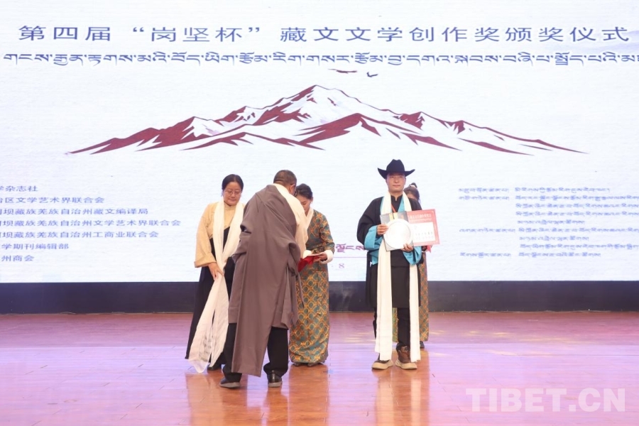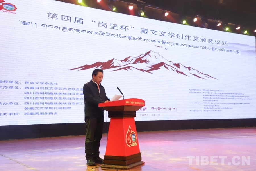 中國西藏網(wǎng)訊 11月8日,第四屆“崗堅(jiān)杯”藏文文學(xué)創(chuàng)作獎頒獎儀式在拉薩舉行。來自北京、四川、青海、西藏等地的文學(xué)界代表、獲獎作者、藏文文學(xué)期刊主編及讀者代表齊聚一堂,共赴這場植根民族傳統(tǒng)、彰顯時代精神的文化之約,奏響新時代藏文文學(xué)守正創(chuàng)新的昂揚(yáng)旋律。