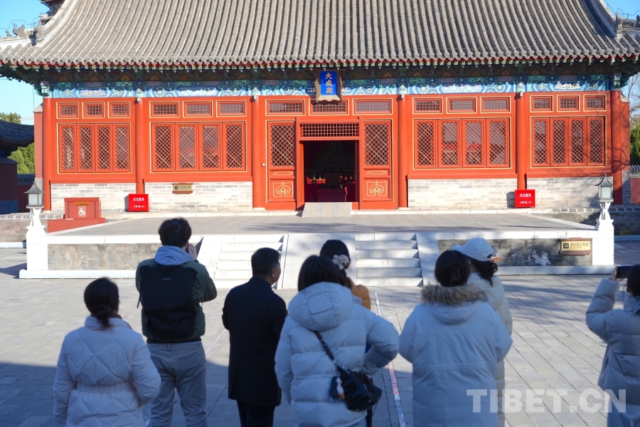 圖為采風(fēng)團(tuán)隊走進(jìn)中國北京歷代帝王廟,認(rèn)真聽講解 攝影:王妍丹