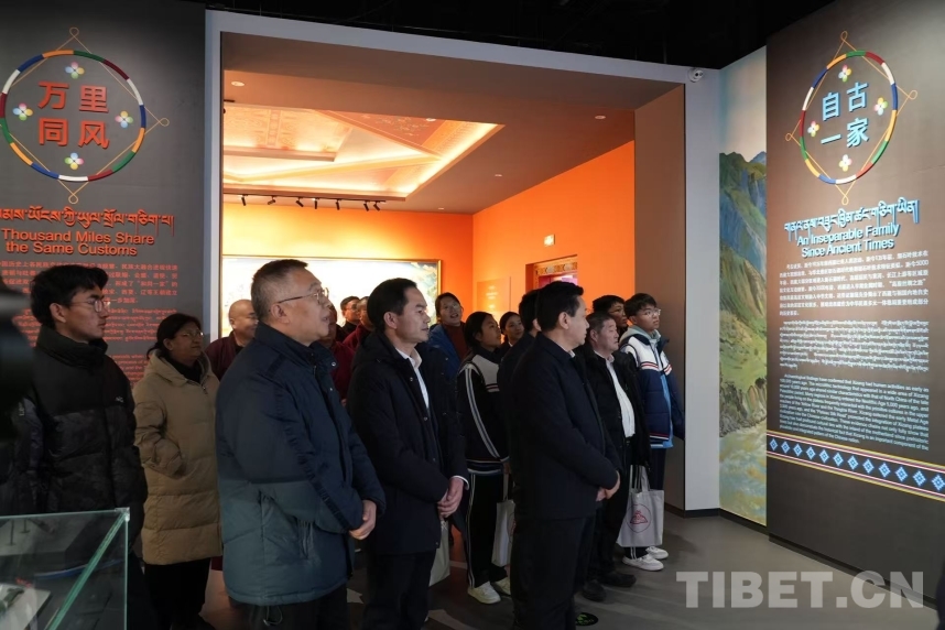 鄭堆在致辭中指出,西藏自古以來就是中國不可分割的一部分,一系列遺址、文物、檔案、文獻(xiàn)串聯(lián)起的歷史證據(jù)鏈,確鑿印證西藏與祖國同源同流、血脈相連,充分證明了中華民族共同體的形成和發(fā)展是人心所向、大勢所趨、歷史必然。中國藏學(xué)研究中心作為中國藏學(xué)研究的國家隊(duì),自成立以來始終堅(jiān)持“為維護(hù)祖國統(tǒng)一,加強(qiáng)民族團(tuán)結(jié)服務(wù);為西藏和四省涉藏州縣發(fā)展穩(wěn)定服務(wù)”的宗旨,圍繞西藏的歷史法律地位、西藏地方與祖國關(guān)系史、歷代中央政府治藏政策等進(jìn)行了全面、深入的研究,為中華民族發(fā)展史研究夯實(shí)了堅(jiān)實(shí)的基礎(chǔ)。藏研中心集全國藏學(xué)研究之力,先后完成了《西藏通史》和《西藏文化史》等重大項(xiàng)目,分別以八卷的體量、上千萬字的篇幅系統(tǒng)論證了西藏自古以來是中國不可分割的一部分,西藏文化是中華文化不可分割的有機(jī)組成部分。同時,扎實(shí)推動了《西藏早期文明史研究》《元以來西藏地方與中央政府關(guān)系研究》等重點(diǎn)課題,整理出版了《元以來西藏地方與中央政府關(guān)系檔案史料匯編》《中國第二歷史檔案館所存西藏和藏事檔案匯編》《中華大典·藏文卷》等一系列檔案文獻(xiàn)和史籍著作,為系統(tǒng)梳理西藏與其他民族和地區(qū)交往交流交融的歷史,推進(jìn)中華民族發(fā)展史研究夯實(shí)了扎實(shí)的史料基礎(chǔ),也使今天的展覽擁有了雄厚的研究基礎(chǔ)。從自在到自覺,中華民族從千萬年的榮辱興衰中攜手走來;從“社稷如一”到“書寫美麗西藏新篇章”,西藏的命運(yùn)始終與中華民族大家庭緊密相連。歷史鑄就的共同體,充分彰顯了中華民族國土不可分、國家不可亂、民族不可散、文明不可斷的共同信念。新時代,雪域兒女堅(jiān)信,在中華民族強(qiáng)國建設(shè)的新征程上,中華民族共同體必然會在我們的共同奮斗中愈發(fā)牢固。