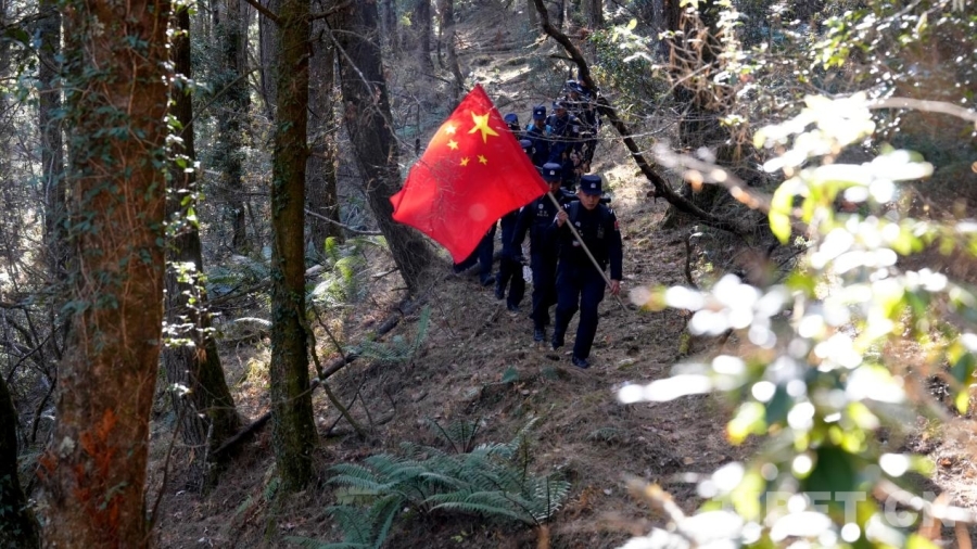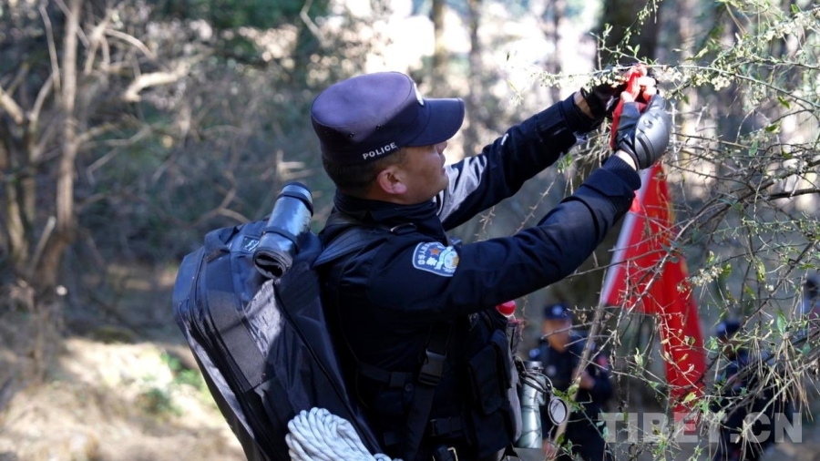 這一路,所謂好走的路,也只夠一人挺直身子通過(guò)。更多時(shí)候,我們必須手腳并用——腳下是打滑的碎石。手緊抓著巖縫里的草石,一步,一步,往前挪。巡邊途中的原始叢林間,無(wú)數(shù)或新或舊的紅繩系于冷杉枝頭,蜿蜒指向中尼邊境46號(hào)界樁的方向——這是民警們用腳步反復(fù)確認(rèn)的“生命航線”。