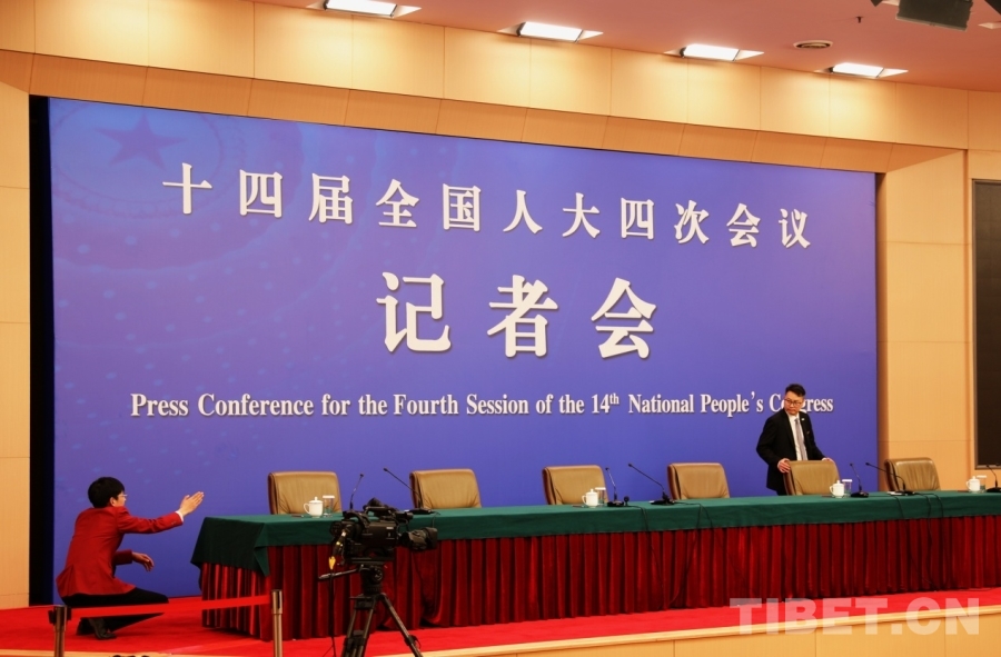 2026年全國兩會新聞中心的新聞發(fā)布廳已準(zhǔn)備就緒 攝影:劉莉