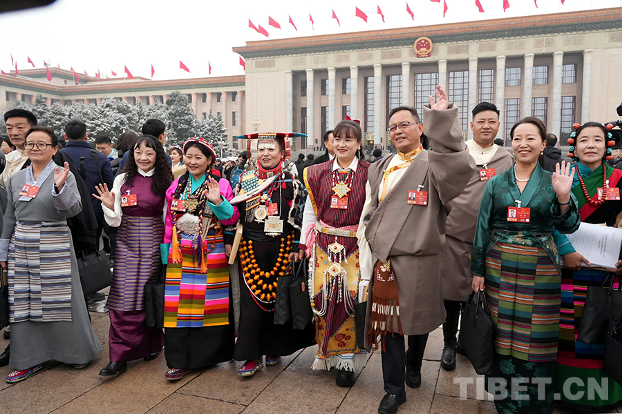 來自西藏自治區(qū)的全國人大代表走出會場 攝影:邊子捷