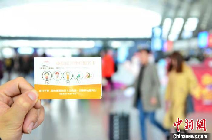 圖為重點(diǎn)旅客預(yù)約服務(wù)卡,受理老幼病殘?jiān)械瘸鲂胁槐懵每头?wù)預(yù)約。魯?shù)り?攝
