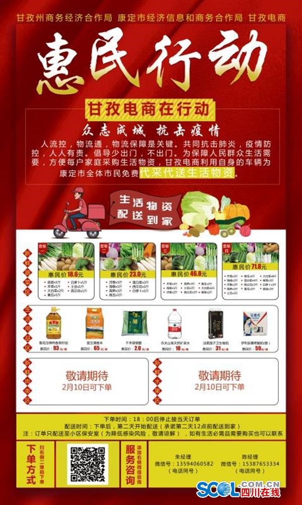 據(jù)悉,這是四川省甘孜州商務(wù)和經(jīng)濟(jì)合作局為配合防疫工作,降低市民出行交叉感染的幾率,聯(lián)合康定市經(jīng)合局、爐城和榆林2個(gè)街道辦9個(gè)社區(qū)、圣潔甘孜扶貧超市、康定民貿(mào)公司、康定鄰你超市、順豐甘孜快遞等企業(yè)和單位,為居住在康定新老城區(qū)的居民,專門(mén)開(kāi)展的“防疫套餐”送貨上門(mén)惠民行動(dòng)。