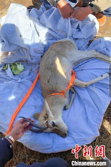 圖為受傷的國家二級(jí)保護(hù)野生動(dòng)物雄性藏原羚。達(dá)日縣森林公安局供圖