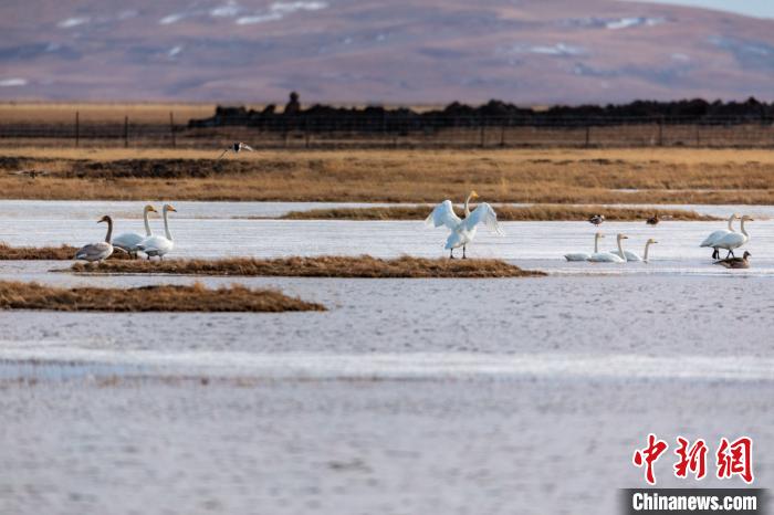 從西伯利亞飛來的大天鵝。若爾蓋縣融媒體中心供圖 攝