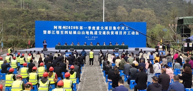 3月26日,四川省阿壩州以分會場形式在汶川縣映秀鎮(zhèn)遺址公園舉行該州一季度重大項目集中開工,同步舉行都江堰至四姑娘山山地軌道交通扶貧項目開工動員儀式。阿壩州委書記劉坪宣布重大項目集中開工暨都四軌道開工動員啟動。