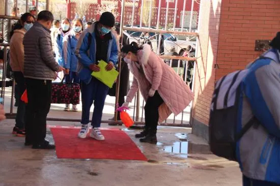 早晨八點(diǎn)三十分,學(xué)生陸續(xù)到校,學(xué)校各部門按照前期演練的程序有序組織學(xué)生進(jìn)校。班主任在學(xué)生整隊(duì)等待區(qū)整隊(duì)、學(xué)生遞交返校監(jiān)控資料、鞋底消毒、手部消毒、領(lǐng)取新口罩、回收舊口罩、體溫檢測(cè)、洗手、入班再檢測(cè)體溫、宣講新型冠狀病毒感染肺炎防控知識(shí),各個(gè)環(huán)節(jié)緊湊有序。185名高三學(xué)生沒(méi)有出現(xiàn)任何身體不適和體溫異常情況,實(shí)現(xiàn)了有序安全返校。