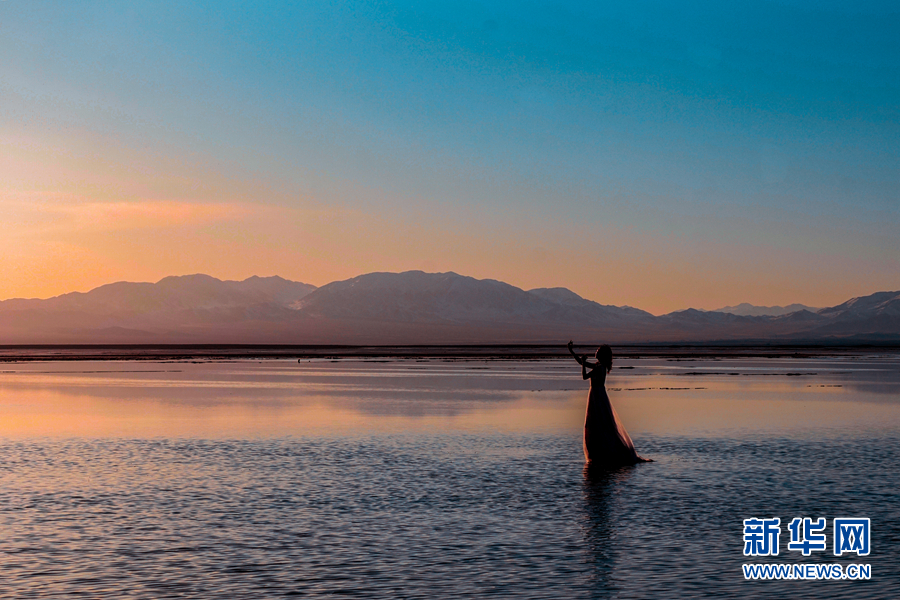 游客在茶卡鹽湖景區(qū)內(nèi)拍照。新華網(wǎng) 達(dá)洛 攝)