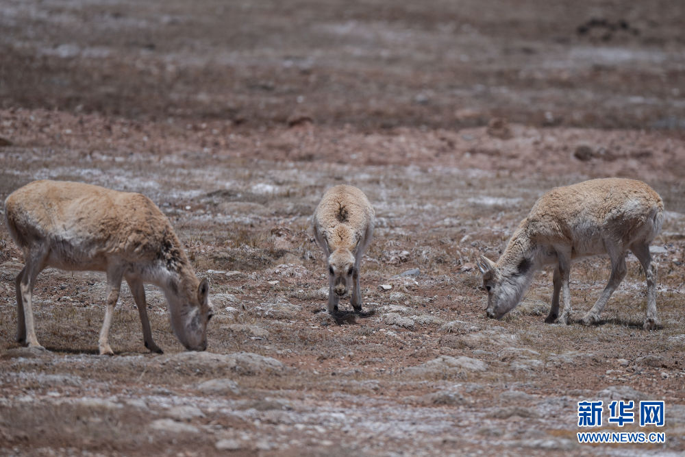 5月15日,幾只藏羚羊在可可西里地區(qū)活動(dòng)。新華社記者 吳剛 攝