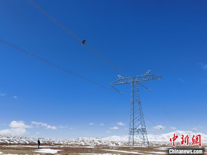位于青海省可可西里東南部的風(fēng)火山地區(qū),被譽(yù)為“電力天路”的青藏聯(lián)網(wǎng)工程輸電線路跨越而過,國(guó)網(wǎng)青海省電力公司檢修公司輸電運(yùn)檢人員正在對(duì)±400千伏柴拉線801號(hào)塔輸電線路進(jìn)行高空走線巡檢。