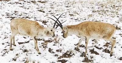 多年的觀察記錄也表明,藏羚羊的遷徙怕受任何驚擾,任何的風(fēng)吹草動都會使它們擔(dān)驚受怕,即便是公路上那一道并不刺眼的黃色交通標示,也會令它們望而卻步。人類所能做的就是盡可能讓其免受任何驚擾,以保障它們安全踏上遷徙之路,完成一代代繁衍生命的跋涉,而后又安全返回賴以生活的家園。
