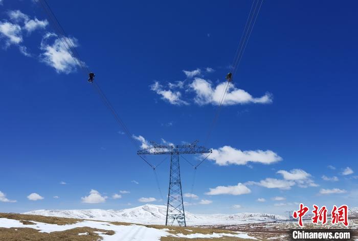 圖為國網(wǎng)青海檢修公司輸電運檢人員對“電力天路”青藏聯(lián)網(wǎng)工程±400千伏柴拉線開展年度檢修,查找并消除線路缺陷隱患。謝莉蓉 攝