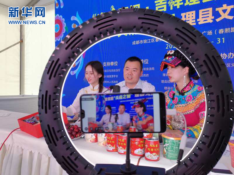 推介活動中,理縣推出了田園采摘休閑游、溫泉康養(yǎng)舒心游、藏羌民宿體驗游、孟屯河谷避暑游、米亞羅紅葉攝影游、高山滑雪暢快游六條特色旅游線路,展現(xiàn)了理縣桃坪羌寨-甘堡藏寨旅游景區(qū)、畢棚溝景區(qū)、孟屯河谷景區(qū)、米亞羅景區(qū)等的獨(dú)特魅力。傳統(tǒng)的藏羌歌舞表演、藏羌文創(chuàng)產(chǎn)品展和藏羌民俗風(fēng)景攝影展向成都市民展示了理縣的自然風(fēng)光和燦爛的藏羌文化?,F(xiàn)場,理縣縣長王世偉通過直播帶貨,為理縣甜櫻桃、松茸、手工文創(chuàng)等代言。