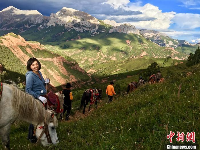 圖為2018年8月,劉馨濃(左)與接待家庭向?qū)円黄鹪O(shè)計騎馬線路。 中新社發(fā) 山水自然保護(hù)中心 供圖
