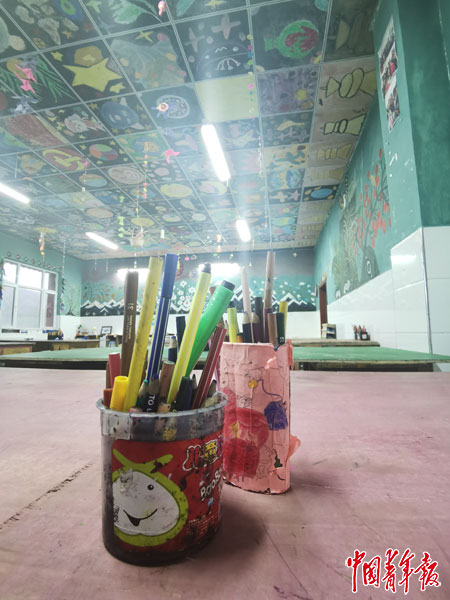 滿掌鄉(xiāng)小學(xué)有專門的音樂課和美術(shù)課教室,音樂教室里有鋼琴和電子琴,還有個(gè)沒人彈過的古箏。美術(shù)教室布置得極熱鬧,天花板上都有老師和學(xué)生們的涂鴉。