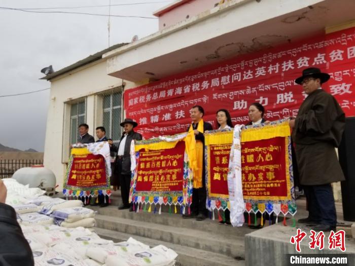 資料圖為青海省稅務(wù)局扶貧工作領(lǐng)導(dǎo)小組成員赴達(dá)英村捐贈物資。國家稅務(wù)總局青海省稅務(wù)局供圖