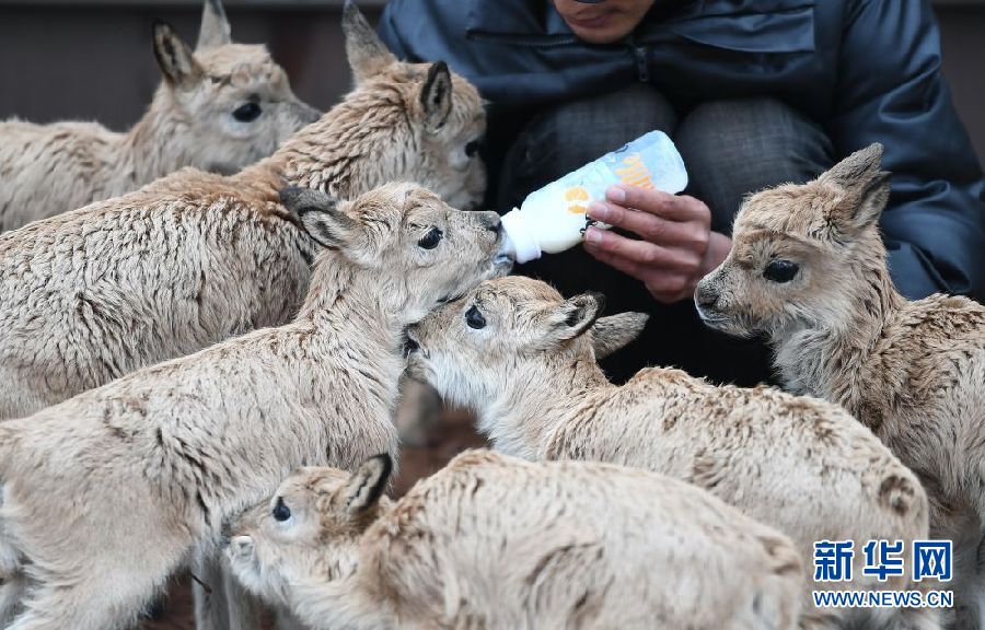 為讓11只藏羚羊幼仔盡快適應(yīng)環(huán)境、健康成長(zhǎng),卓乃湖保護(hù)站安排專人,在特定區(qū)域?qū)ζ溥M(jìn)行喂養(yǎng)。記者在卓乃湖保護(hù)站看到,每日早、中、晚,巡山隊(duì)員才文多杰會(huì)按時(shí)給小藏羚羊喂奶,每只小藏羚羊都有自己的“專用”奶瓶。