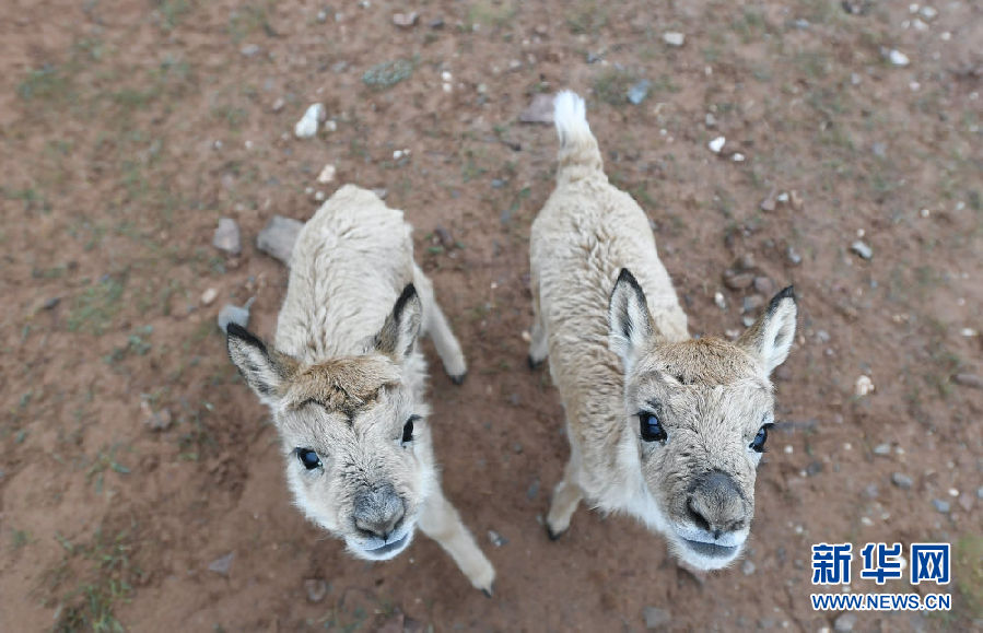 這是7月8日在三江源國(guó)家公園管理局長(zhǎng)江源園區(qū)可可西里管理處卓乃湖保護(hù)站拍攝的兩只藏羚羊幼仔。新華社記者 張龍 攝