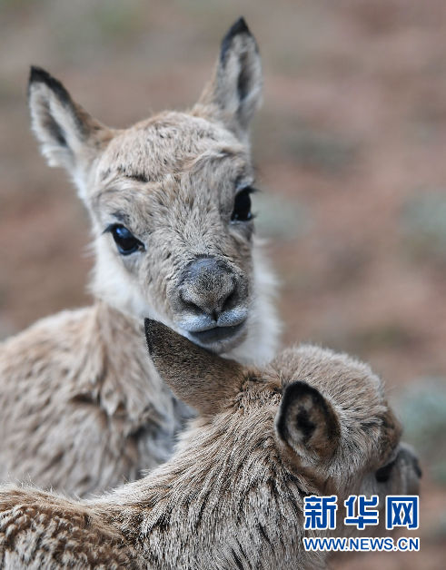 這是7月7日在三江源國(guó)家公園管理局長(zhǎng)江源園區(qū)可可西里管理處卓乃湖保護(hù)站拍攝的兩只藏羚羊幼仔。新華社記者 薛玉斌 攝