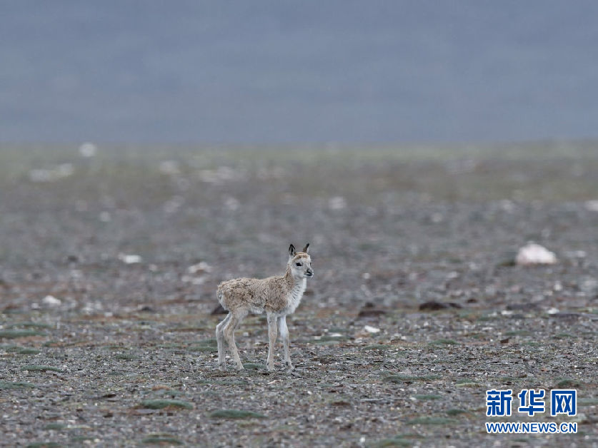 7月7日在可可西里卓乃湖區(qū)域拍攝的一只藏羚羊幼仔。新華社記者 張龍 攝