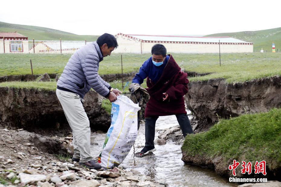 7月21日,青海省海北藏族自治州剛察縣伊克烏蘭鄉(xiāng)剛察貢麻村的吉科加(左)、索南木旦巴(右)兩人正在草場上的小河中撿拾垃圾。2008年,萬瑪扎西路在村支書的支持下,與索南木旦巴、仁增才讓、吉科加三個人組建了義務環(huán)保隊,自此一干就是12年。他們在撿拾垃圾的同時進行著環(huán)保宣傳,希望從源頭減少垃圾。仁增才讓說:“現在草原上的垃圾幾乎是看不到了?!敝行律缬浾?馬銘言 攝