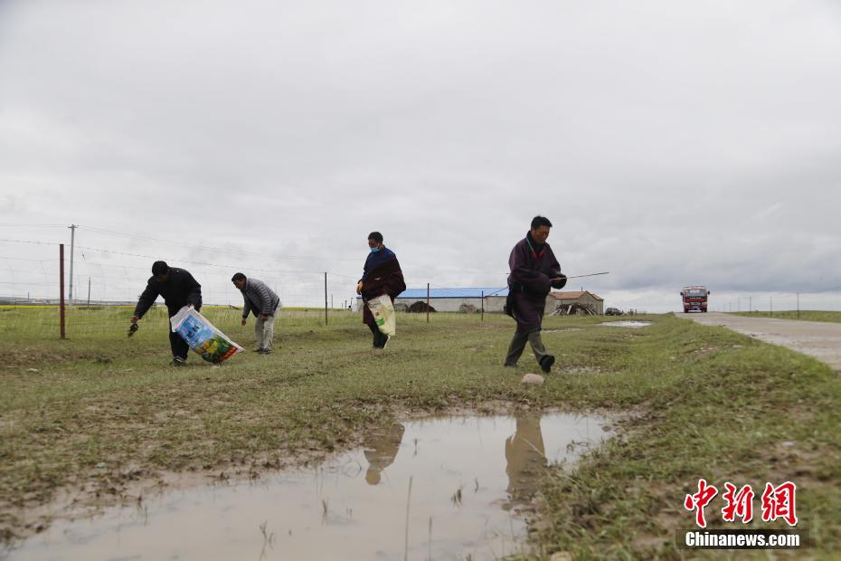 7月21日,青海省海北藏族自治州剛察縣伊克烏蘭鄉(xiāng)剛察貢麻村的萬瑪扎西、索南木旦巴、仁增才讓、吉科加四人在撿拾著草場垃圾。2008年,萬瑪扎西路在村支書的支持下,與索南木旦巴、仁增才讓、吉科加三個人組建了義務環(huán)保隊,自此一干就是12年。他們在撿拾垃圾的同時進行著環(huán)保宣傳,希望從源頭減少垃圾。仁增才讓說:“現在草原上的垃圾幾乎是看不到了?!敝行律缬浾?馬銘言 攝