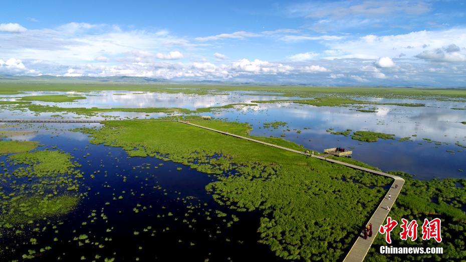 圖為7月21日,航拍花湖風(fēng)光。中新社記者 安源 攝