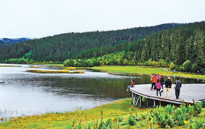 游客在普達(dá)措國(guó)家公園內(nèi)游覽。新華社記者 張譽(yù)東 攝