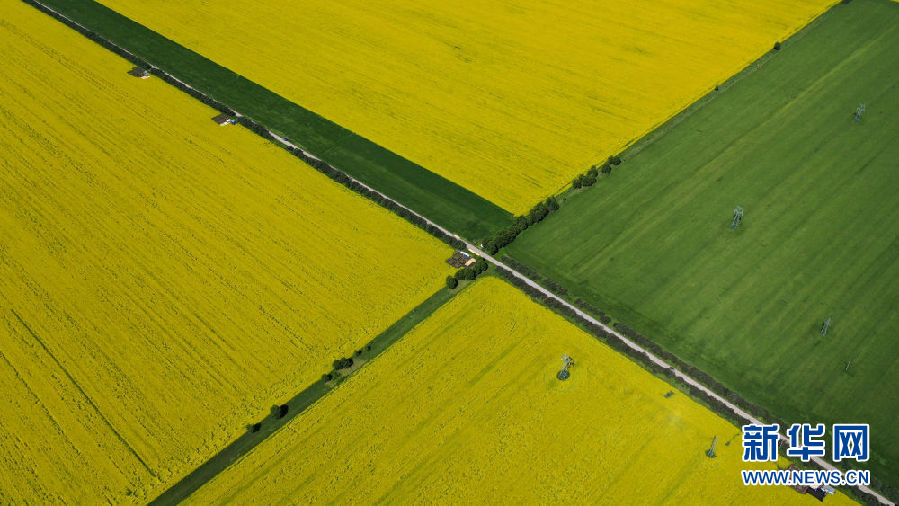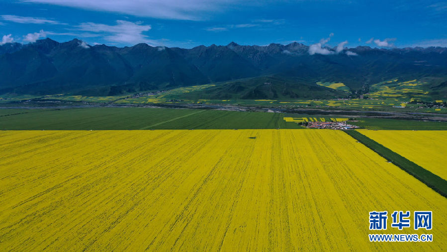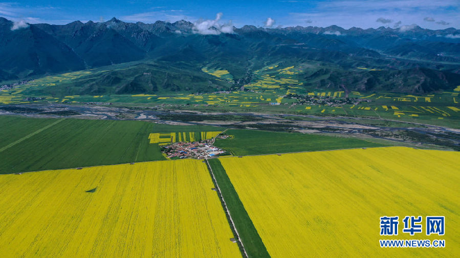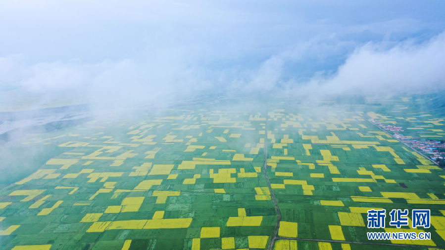 這是7月22日拍攝的門源回族自治縣的油菜花(無人機(jī)照片)。新華社記者 吳剛 攝
