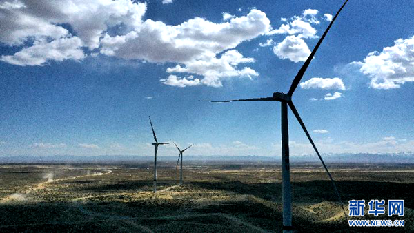 青海省海南藏族自治州共和縣的一處風(fēng)力發(fā)電項(xiàng)目(5月1日攝,無(wú)人機(jī)照片)。新華社記者 張宏祥 攝