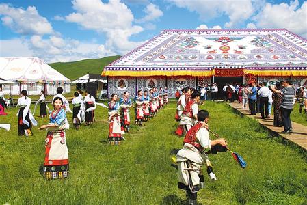 七月盛夏,蔚藍的天空中飄著朵朵白云,農牧民在碌曲草原上跳起歡樂的鍋莊舞,唱起一首首悠揚婉轉的藏歌,表達著對黨和政府的感恩之情。
