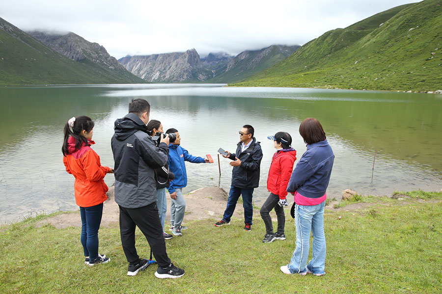 年保玉則景區(qū)保護(hù)管理局宣傳營(yíng)銷部主任華青多杰對(duì)記者說(shuō),2018年4月,年保玉則全面停止對(duì)外開(kāi)放,將生態(tài)保護(hù)擺在了首要工作上?!扒靶┠辏侥瓯S駝t游玩的旅客日益增多,僅2017年景區(qū)接待游客10.6萬(wàn)人次?!?/p>
